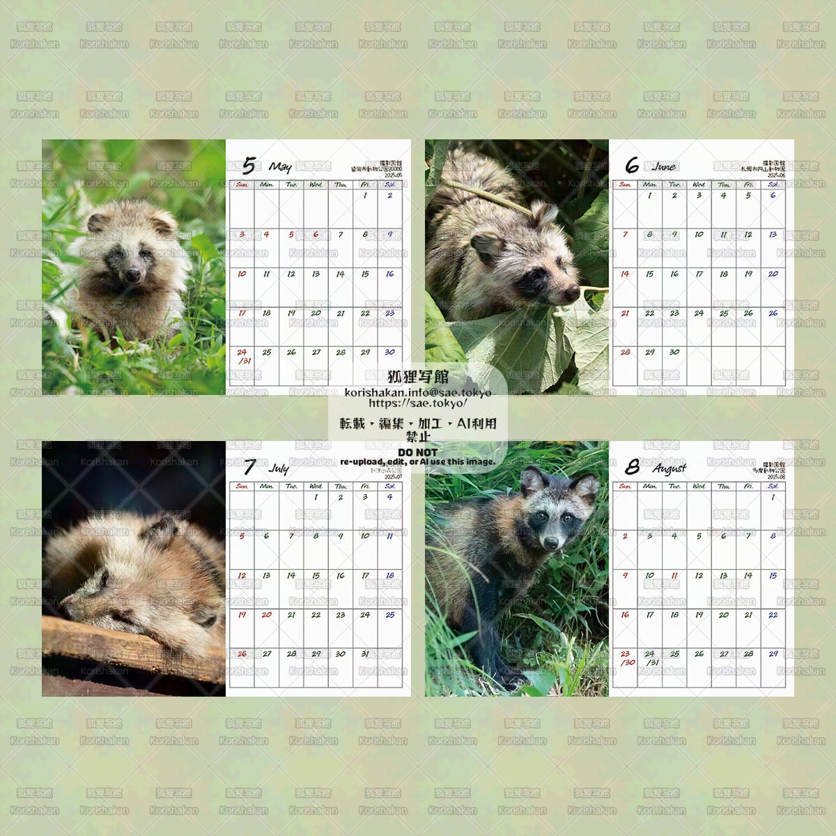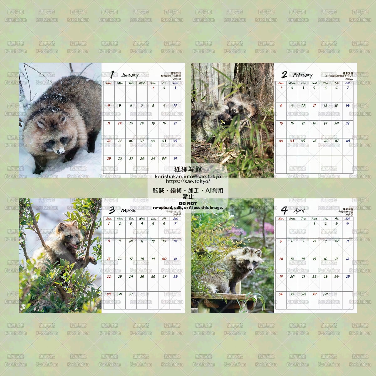 動物園で撮影したタヌキ写真を12枚使っています。