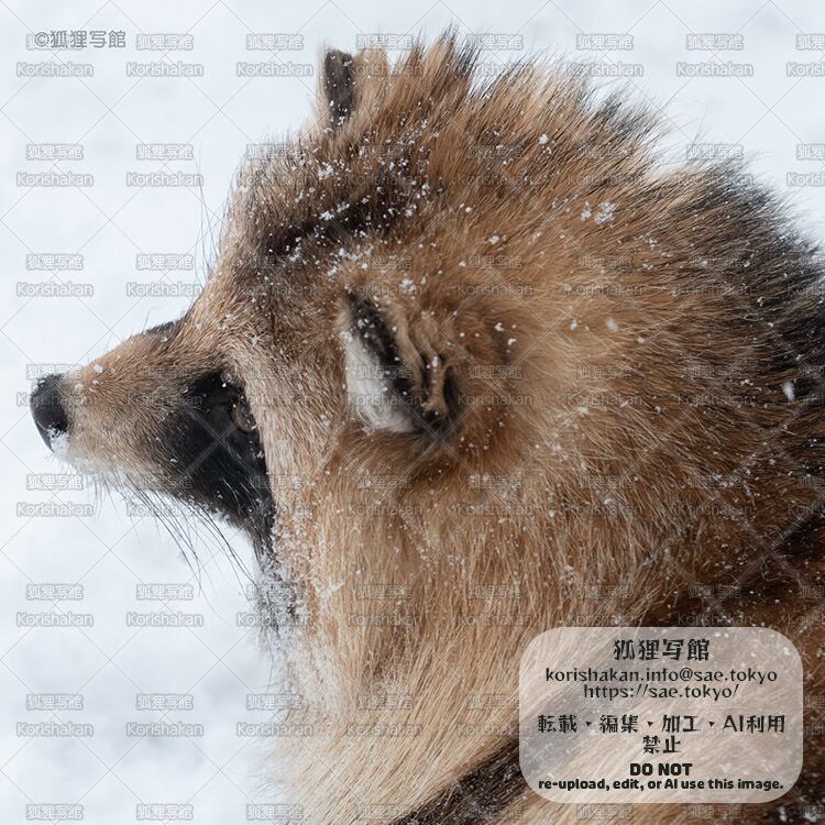 めがねふき(エゾタヌキ・冬毛と雪)