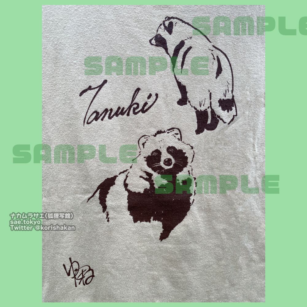 動物園で撮影した写真を元に描いたタヌキのイラストを、半袖Tシャツにしました。