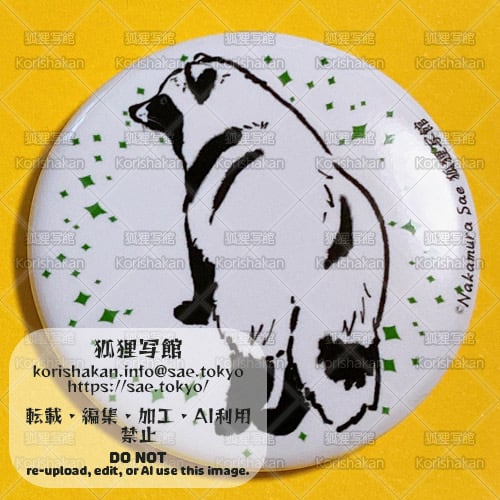 モノクロイラスト缶バッジ(ホンドタヌキ全身)