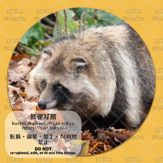 秋のエゾタヌキの44mm缶バッジ C.右からタヌキ